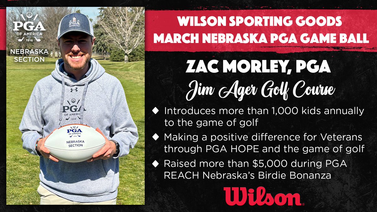 Lincoln, NE – The Nebraska Section PGA is proud to name Zac Morley, PGA, of Jim Ager Golf Course in Lincoln as the March Wilson Sporting Goods Game