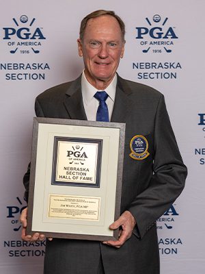 Jim White, known as the “G.O.A.T” of Nebraska PGA for his extraordinary playing career, boasts 13 Nebraska PGA Championship titles—the most in the event’s history. Nationally, he won the 2004 Senior PGA Professional National Championship and competed in multiple U.S. Opens, PGA Championships, and PGA Club Professional Championships.