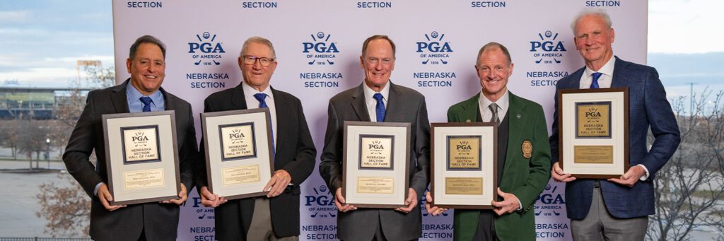 During the three-hour dinner program Dec. 5 at the Hilton Omaha, Eshleman and Honnens spoke; the evening’s master of ceremonies, Greg Neujahr of Champions Run in Omaha, moderated a panel discussion with PGA of America at-large board member Dawn Neujahr, his wife, and Nebraska Section PGA president Mike Schuchart of Wilderness Ridge in Lincoln; and the six members of the new Hall of Fame were presented.