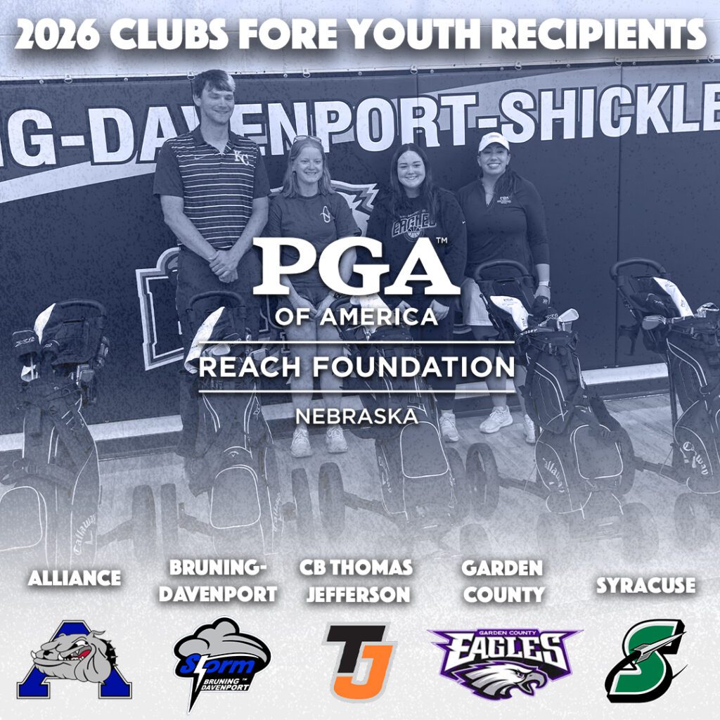 PGA REACH Nebraska is excited to announce the selection of five new high school girls golf programs for 2026. Designed to remove barriers to participation, Clubs FORE Youth equips students—particularly those without access to the game—with the resources and support needed to learn, play, and grow through golf.