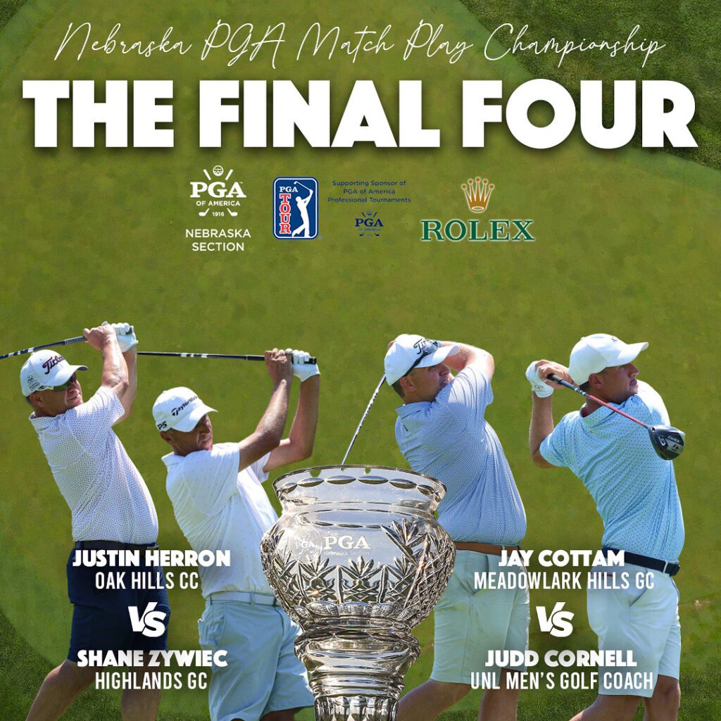Omaha, NE – The final four in Nebraska PGA’s annual Match Play Championship met at Omaha Country Club for a showdown to find our new champion. Supported by the PGA TOUR and Rolex, the season-long bracket began in May with the round of 64 leading us up to Thursday’s semifinal and final matches.