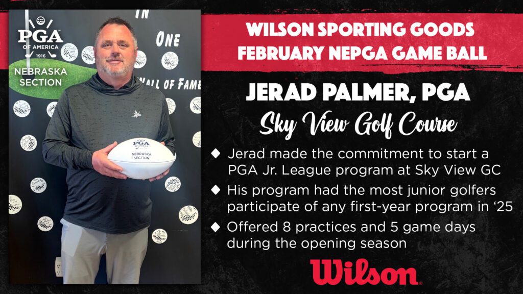 Congratulations to Jared Palmer, PGA, of Sky View Golf Course in Alliance, on being named this month’s Nebraska PGA Wilson Sporting Goods Game Ball Award Recipient.