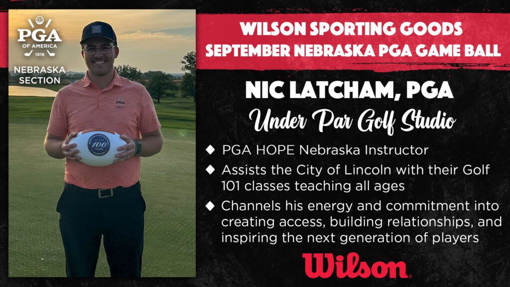 Lincoln, NE – The Nebraska Section PGA is proud to recognize Nic Latcham, PGA of Under Par Golf Studio as the Wilson Sporting Goods Game Ball recipient for September.