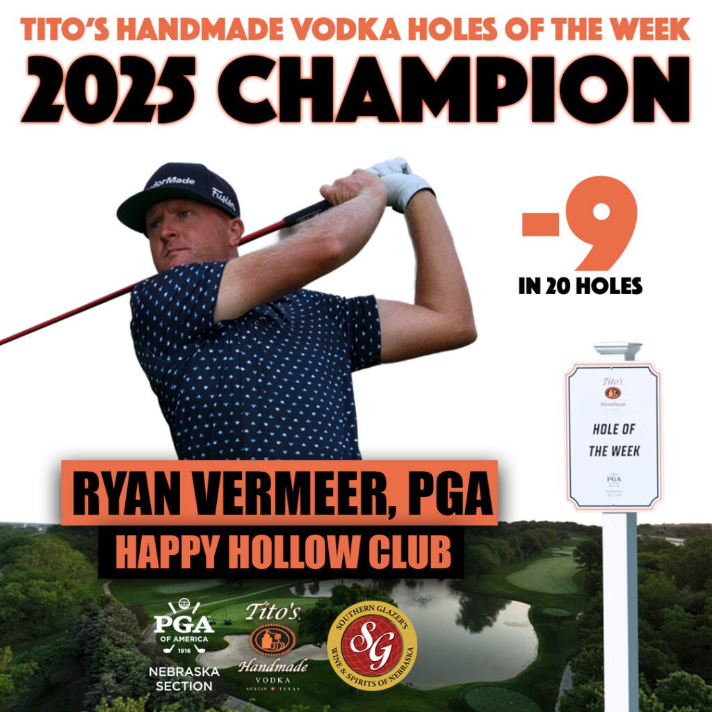 The Nebraska Section PGA partners with Southern Glazer’s Wine & Spirits to present the Tito’s Handmade Vodka ‘Holes of the Week’ (HOTW). Over the course of the season, two featured holes are chosen at designated Tito’s Handmade Vodka events. In 2025, 12 events on the schedule will featured Tito’s Handmade Vodka HOTW completing the 24-hole season-long challenge. Nebraska PGA Professionals must record scores on NINE of the designated holes to be eligible for prizes at the end of the season. Players will post their lowest scores relative to par for the 24 designated holes and each of their NINE best scores will count to their overall total.